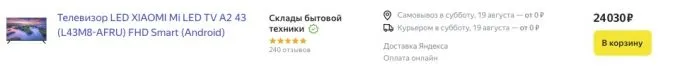 За последние несколько дней цена на Xiaomi Mi TV A2 43″ подскочила до 30 косарей, но у некоторых продавцов на Яндекс.Маркете ещё можно урвать его до 25 тысяч рублей. Более того, с такой покупки можно получить нехилый кешбэк в некоторых банках.
