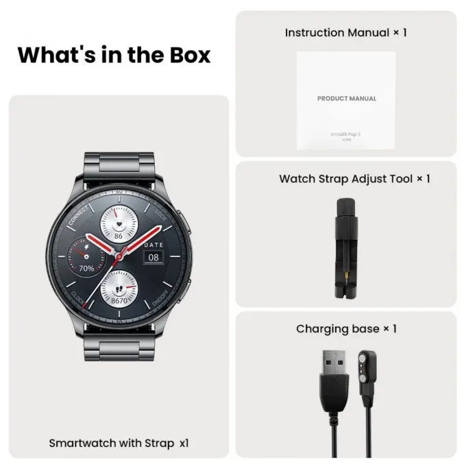 Amazfit Pop 3R внешне напоминают флагманские Samsung Galaxy Watch5. Они очень стильные и совсем не отдают дешевизной, присущей китайским ноунеймам из этого ценового сегмента. «Котлы» получили круглый 1,43-дюймовый AMOLED-экран с разрешением HD (466х466 пикселей) и функцией Always-On Display. Важные уведомления вы точно не пропустите. Всё это упаковано в 45,5-мм корпус из металла с двумя физическими кнопками. Уже из коробки в часы предустановлено более 100 циферблатов, поэтому каждый сможет найти что-то для себя.