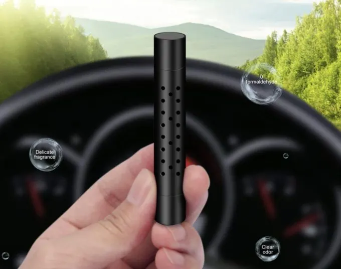Эта палочка на фото — универсальная «вонючка» в салон авто. Внутри нее находится пропитанная ароматическим маслом палочка: сквозь нее проходит воздух, в машине появляется приятный запах. Устройство имеет металлическую прищепку, с помощью которой ароматизатор можно прикрепить к любому дефлектору кондиционера.