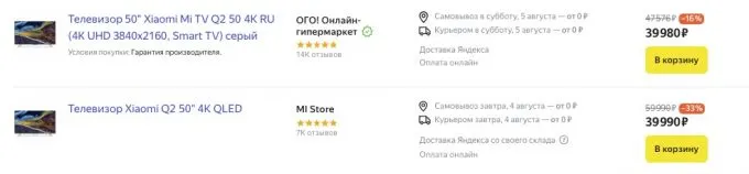 Даже с учётом колебаний курса рубля, Xiaomi TV Q2 50″ пока ещё можно урвать на Яндекс.Маркете по справедливой цене в 39 990 рублей. Более того, с такой покупки можно получить жирный кэшбек от некоторых банков.