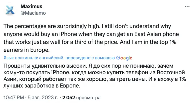 Пользователи X (экс-твиттер) объяснили, что высокий уровень жизни не всегда связан с выбором телефона.