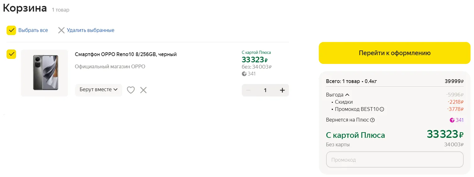 Если эти недостатки вас не смущают, можете взять Oppo Reno 10. Как урвать его с серьезной скидкой? Просто переходите по этому линку и оформляйте заказ с промокодом BEST10 — тогда смарт обойдется вам в 33 320 рублей при оплате через фирменный сервис «Пэй» или в 34 тысячи при использовании обычной карты.