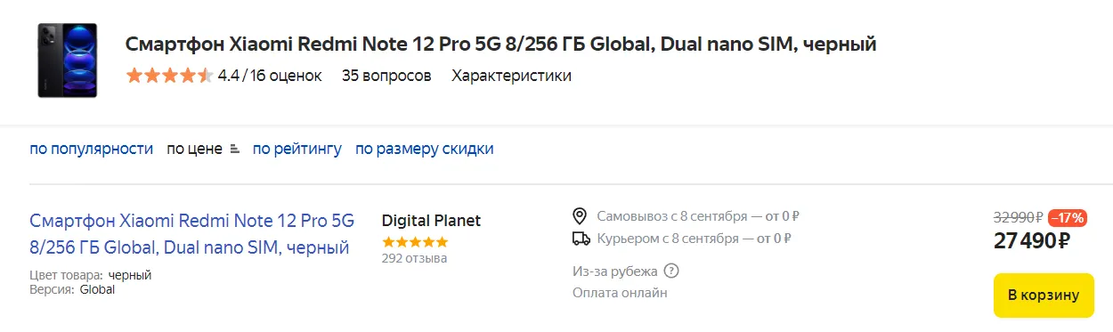 Сейчас Redmi Note 12 Pro 5G висит на Маркете всего за 27 490 рублей, причем речь про одну из старших конфигураций за 8/256 Гбайт памяти. Подвох этого оффера в том, что доставка осуществляется из-за рубежа. Впрочем, она должна быть довольно быстрой — Маркет обещает, что вы получите товар примерно через неделю. Удивительно, но версии на 6/128 или 8/128 гигов заметно дороже, поэтому такое предложение однозначно нельзя игнорировать — вот линк на покупку.