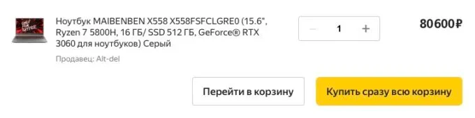 Обычно ноуты с такой конфигурацией стоят под 120 тысяч рублей, но сейчас на Яндекс Маркете можно урвать Maibenben X558 всего за 80 600 рублей. Также не забывайте, что некоторые банки готовы кэшбекнуть приличную сумму за покупку на этой площадке.