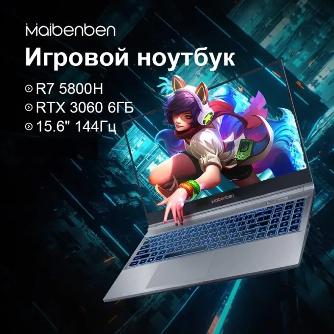 Игровой ноутбук Maibenben с процессором Ryzen 7 и видеокартой NVIDIA RTX3060 упал в цене на Маркете. Отличный вариант для работы и развлечений