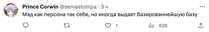 Король постиронии может нахваливать игру, а потом критиковать ее со страшной силой и неоднократно менять свою позицию — на то он и король! Например, мнение по Starfield менялось у Мэда несколько раз: