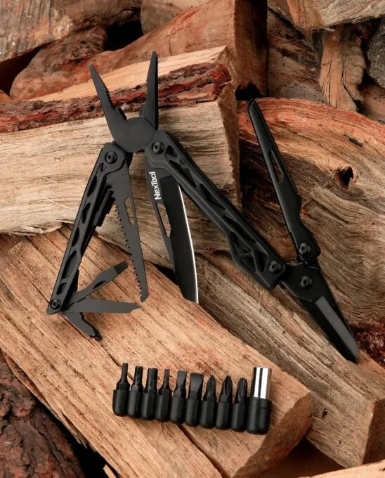 В компактный NexTool Black Knight встроено 11 действительно нужных инструментов: нож, плоскогубцы, выемка для гаек, кусачки, пила, крестовая отвёртка, огниво, шлицевая отвёртка, открывашка и ножницы. Вдобавок к этому в комплекте идёт набор из 10 самых распространённых бит. С таким комбо можно спокойно раскрутить комп или выдернуть гвоздь из стены.