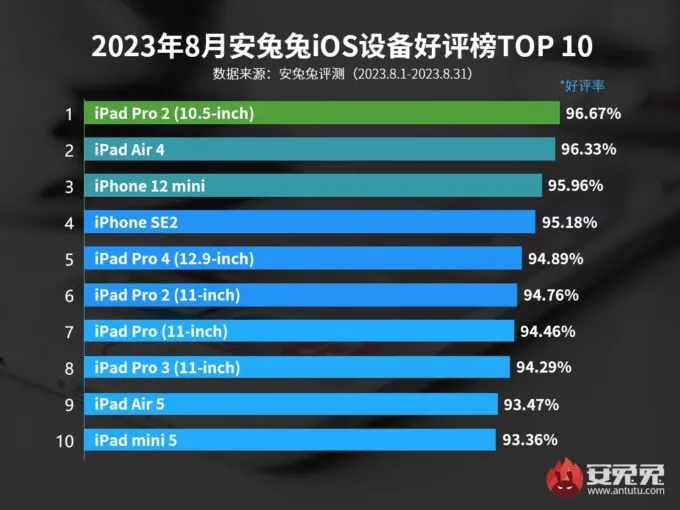 Зато безусловным лидером стал 10,5-дюймовый iPad Pro 2 — продвинутый планшет давно не производят, но юзеры продолжают им пользоваться. Хотя это довольно старый аппарат — в рейтинге самых мощных устройств iOS и iPadOS он занимает лишь 37-ю строчку.