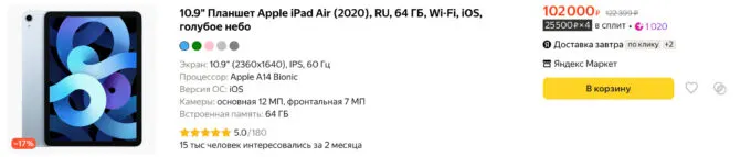 На втором месте, отодвинув на третью позицию iPhone 12 mini, разместился iPad Air 4 поколения. Это успешная модель, но покупать ее в 2023 году не стоит — ценник неадекватный.