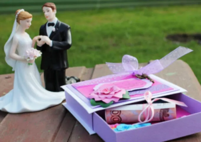 Если денег не очень много или тратить лавэ на малознакомых людей жалко, то подойдите к подарку креативно. Например, можно купить красивую шкатулку и положить в нее чуток кэша. Либо вместе с небольшим количеством денег захватите на свадьбу цветы или бутылку хорошего вина.