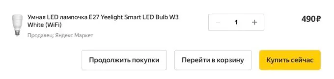 Сейчас на Яндекс Маркете умную лампу Yeelight Smart LED Bulb W3 можно забрать всего за 490 рублей. Приятным бонусом может стать небольшой кэшбек от некоторых банков.