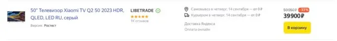 Последний немаловажный фактор — прайс. Сейчас на Маркете топовый Xiaomi TV Q2 50″ можно урвать за 39 900 рублей и кэшбекнуть до 10% при оплате картами некоторых банков.