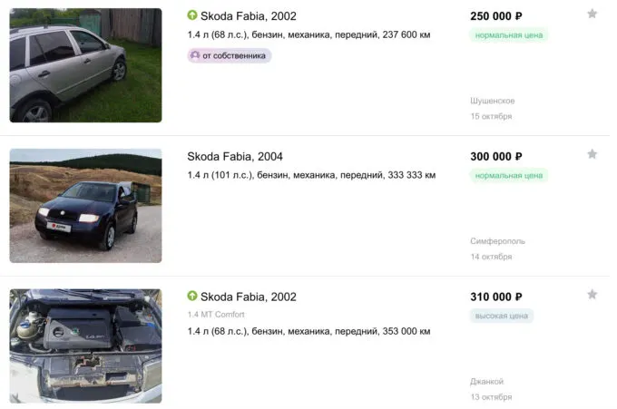 Подтверждаем — чешские машины 2004 года действительно попадаются на сайтах с объявлениями. За такой прайс у модели не очень много конкурентов: старые Mitsubishi Lancer, Lada Priora и Kia Spectra.