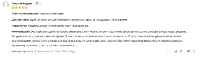 Инженерам респект за то, что они умудрились оборудовать эту машинку не только функцией выпечки, но и опциями приготовления супов, вторых блюд, каш, десертов, йогуртов, напитков и джемов. Однако лучше всего использовать хлебопечь по прямому назначению. Так девайс прослужит долго, а хлеб не будет отдавать остатками рассольника.