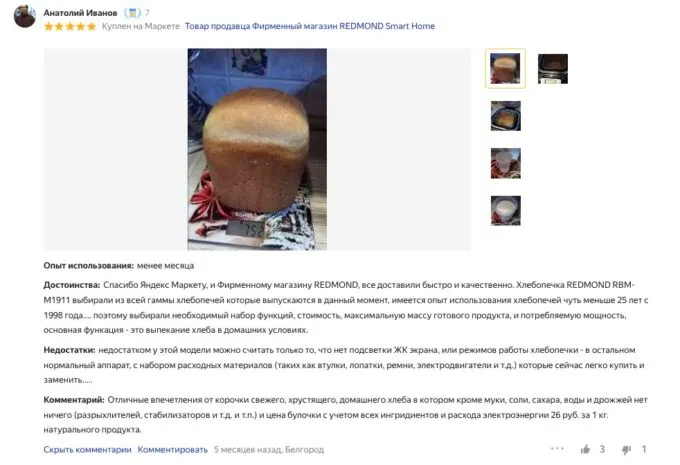 Такой гаджет окупит себя всего за 2-3 месяца, а также избавит вас от поглощения химии, которую зачастую добавляют в крупных цехах, чтобы продукт продержался свежим дольше. Мы изучили рынок и нашли отличную модель от Redmond с кучей функций и сотнями положительных отзывов. Как раз сейчас эту хлебопечь можно урвать со скидкой.