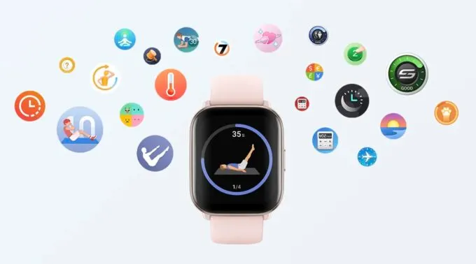 Часики предлагают элегантный металлический корпус прямоугольной формы с плавными изгибами и ремешки из силикона или экокожи. Справа расположена единственная физическая кнопка для вызова меню. Гаджет получил 1,75-дюймовый AMOLED-дисплей с разрешением 390×450 пикселей и функцией Always-On Display. На выбор доступно более 100 циферблатов, включая кастомные. Более того, вы можете залить свои фотки, и часы будут менять их при каждом поднятии запястья.