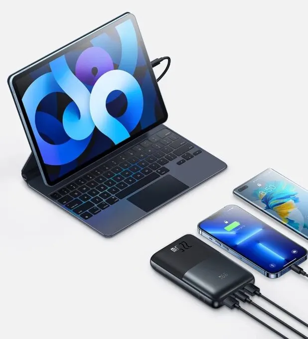 Baseus Bipow Pro — флагманский пауэрбанк с поддержкой всех основных стандартов быстрой зарядки (SCP, PD, QC, FCP, AFC). Благодаря двухцветному корпусу, он выглядит больше как необычный смартфон, а не как типичный аккумулятор. На корпусе расположены два порта USB Type-A и один USB Type-C.