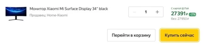 Обычно за Xiaomi Mi Curved Display просят свыше 35 тысяч рублей, но сейчас на Яндекс Маркете его можно урвать за 27 950 рублей и кэшбекнуть до 3 косарей в некоторых банках.