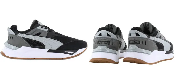 Второй айтем еще сочнее. Это черно-серые кроссовки Puma Mirage Sport Remix. Просто оцените этот брутальный дизайн, в котором текстиль сочетается с кожаными вставками! Но наполнение не уступает визуалу. Подошва, например, сделана с помощью технологии Imeva – легкого пеноматериала, который обеспечивает повышенный комфорт во время прогулок и занятий спортом.
