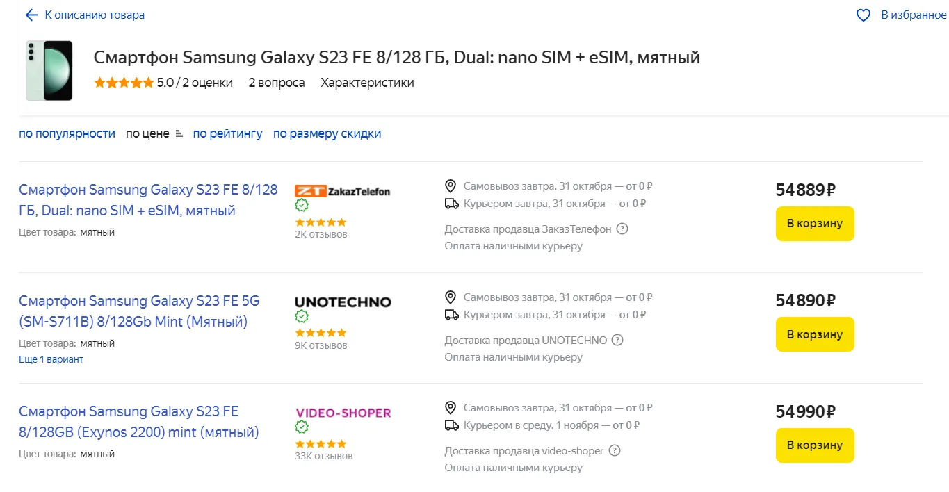 В начале октября Samsung представила очередной фанатский субфлагман — модель S23 FE в России изначально оценили в 64 990 рублей. В конце месяца фиксируем новый прайс — 54 890 рублей. По крайней мере, такая цена актуальна для многих столичных продавцов.