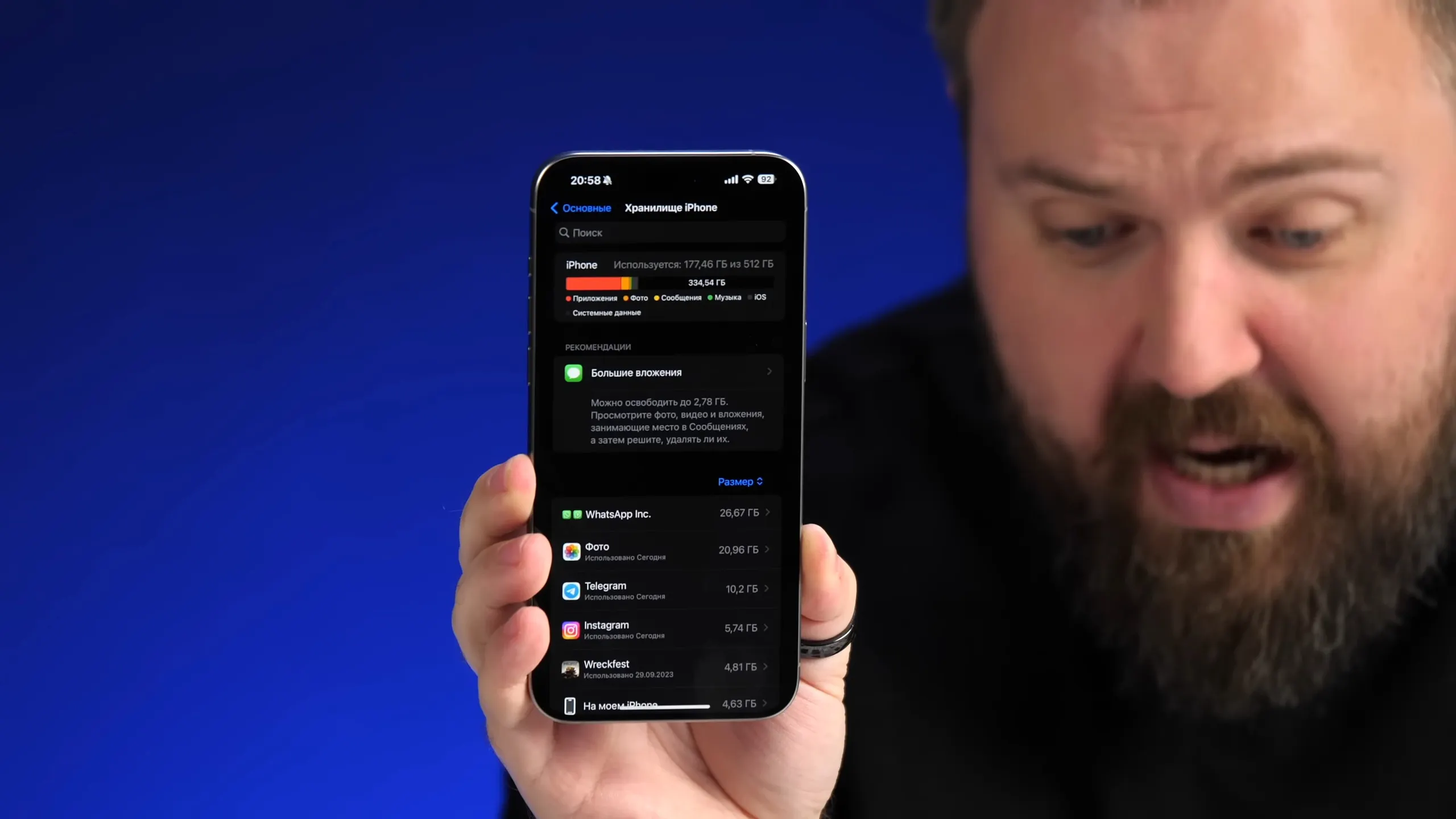 Петухов признался, что смалодушничал и сам купил предмаксимальную модель на 512 Гбайт, но прямо сейчас его телефон хранит 177 Гбайт памяти. То есть накопителя на 256 Гбайт должно было хватить.