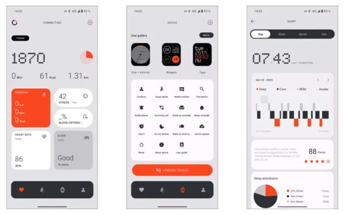 Часы имеют шагомер, пульсометр, пульсоксиметр, трекер сна и уровня стресса. Присутствуют аж пять систем навигации — GPS, ГЛОНАСС, Galileo, QZSS и Beidou. Кроме шагов Watch Pro умеют считать расстояние в метрах и количество сожженых калорий.