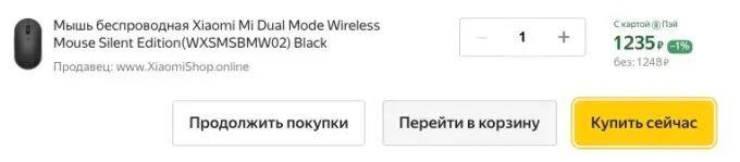 Обычно за Xiaomi Mi Dual Mode Wireless Mouse Silent Edition просят под 2 косаря, но сейчас её можно урвать на Яндекс Маркете всего за 1248 рублей и кэшбекнуть до 15% при оплате картами некоторых банков.