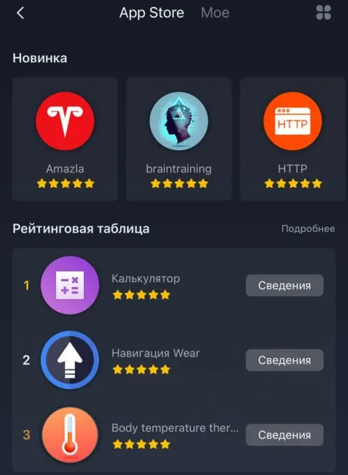 5. В приложении Zepp есть магазин игр и приложений. Геймеры вряд ли возбудятся (там лежат тайтлы типа 2048), зато я скачал на тест градусник. Вернее, это мне казалось, что я смогу замерять часами температуру. Нет! Оказалось, приложение «Термометр» нужно для того, чтобы человек вводил туда результаты измерений нормальным градусником. Такой вот апп уровня электронной записной книжки из 2002 года. Тут я слегка разочаровался.
