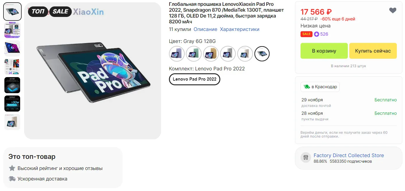 Распродажа 11.11 на Али — прекрасный повод приобрести гаджеты, покупку которых давно откладывали. Например, планшет для комфортного просмотра фильмов или обучения. Если не хотите сильно переплачивать, присмотритесь к роскошному Lenovo Xiaoxin Pad Pro 2022 — сейчас за него просят всего 17 570 рублей.