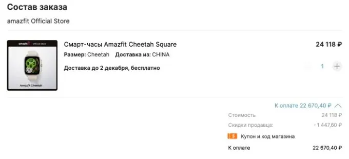 Сейчас на AliExpress флагманские Amazfit Cheetah Square можно забрать всего за 22 670 рублей с учётом купонов продавца, но нужно поспешить, поскольку 11 ноября купоны перестанут действовать.