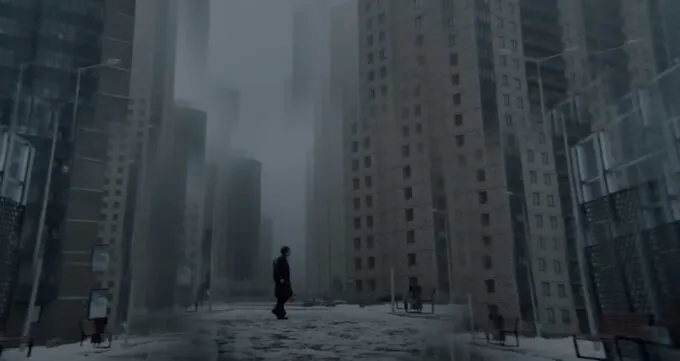С точки зрения визуала «Ласт квест» вчистую переигрывает большинство российских сериалов. Депрессивный Санкт-Петербург, где обитает Олежа, – жертва советского модернизма с домами на тысячу квартир. За окном вечно серое небо, герой общается по телефону с гигантскими говорящими головами, а в один момент он же плывет и метафорически тонет в абсолютном нигде. Каждый кадр просится в рамку и на стену.