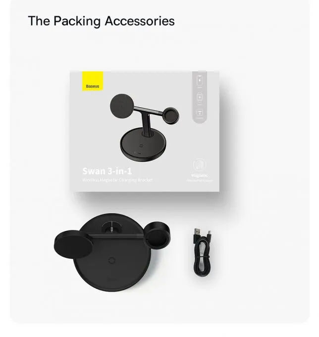 Baseus Swan подключается к источнику питания по USB-C, а соответствующий кабель идёт в комплекте. При желании его можно воткнуть даже в пауэрбанк. Суммарная мощность девайса — 20 Вт, но при подключении трёх гаджетов она распределится на 7,5+7,5+5 Вт. В этом кроется неочевидное преимущество нашего лота. Так ваш iPhone точно не будет перегреваться, а аккумулятор не будет терять в ёмкости быстрее типичных значений. Также рекомендуем не оставлять смартфон на зарядке на ночь и держать батарею в пределах от 20% до 80%.