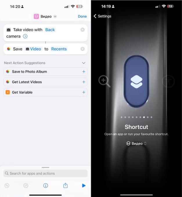 4. Action Button — топ. Вместо переключателя бесшумного режима теперь есть кнопка, на которую можно назначить любое действие вроде фонарика, открытия приложения, или любую «быструю команду». Я назначил на кнопку шорткат для записи видео: всего за один клик телефон начинает снимать ролик из любого состояния. Экономия драгоценных секунд на открытие камеры и нажатие кнопки записи может оказаться решающей при съемке непредсказуемых животных или дерущихся бомжей: никто не хочет пропустить самый смачный удар. Наверняка со временем найдутся и другие полезные сценарии.