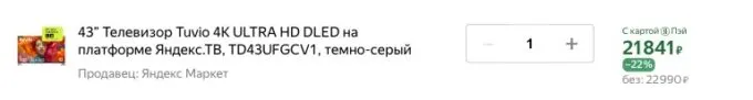 Сейчас на Яндекс Маркете отличный смарт-телевизор Tuvio 4K Ultra HD DLED можно купить за 22 990 рублей, а с кэшбеком некоторых банков он обойдётся в ~20 косарей.