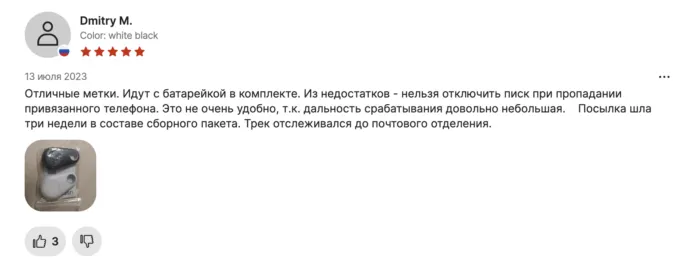 Аксессуар стоит всего 400 рублей, при этом в комплекте лежат два трекера. Полезный и удобный девайс, который можно повесить на ключи, чемодан или рюкзак или любую другую мелочь.