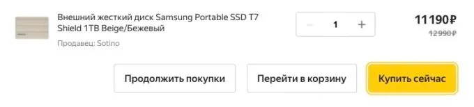 Сейчас на Яндекс Маркете флагманский SSD Samsung T7 Shield на 1 ТБ можно урвать за справедливые 11 190 рублей.