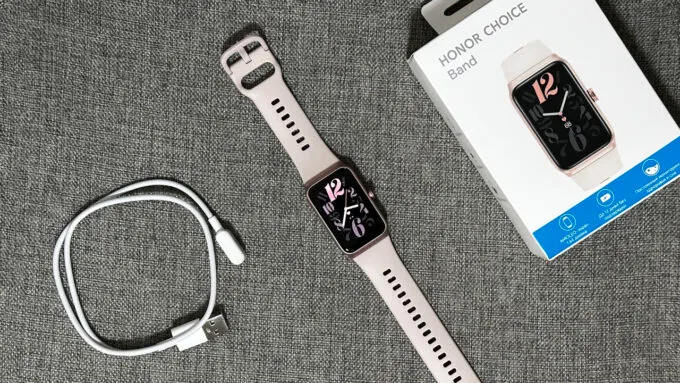 Внешне HONOR Choice Band очень сильно напоминает легендарные Huawei Watch Fit. Наш лот получил прочный корпус, силиконовый ремешок и целый набор полезных фич. Сбоку расположено колёсико для запуска меню, но для прокрутки оно не предназначено.