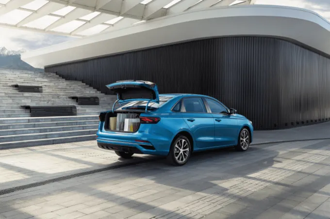 Модуль Emgrand получила кузов седан, 4-цилиндровый бензиновый двигатель объемом 1,5 литра и мощностью 122 л.с. Есть вариант с механикой и автоматической коробкой.
