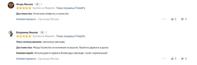 На маркетплейсах наш лот собрал кучу хвалебных отзывов за бомбическое качество сборки, надёжность, адекватную комплектацию и мощность.