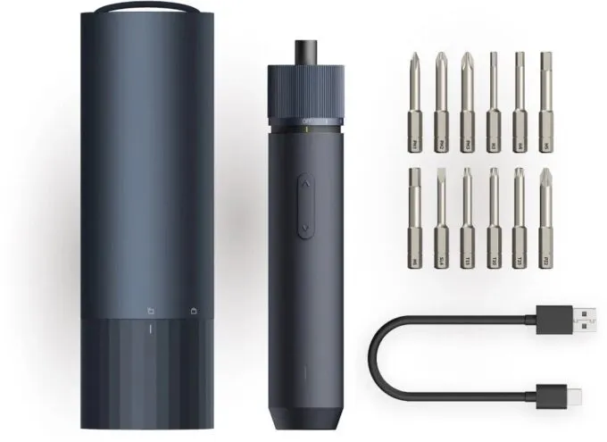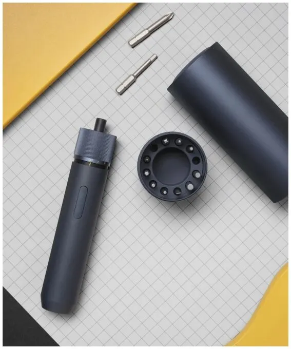 Девайс поставляется с металлическим тубусом для хранения и 12 битами из прочной легированной стали класса S2. Корпус гаджета сделан из солидного TPE-материала с противоскользящей поверхностью. Он очень уверенно лежит в руке и вообще не норовит выскочить. В ручку встроена LED-подсветка и аккумулятор на 1500 мАч, который заряжается за 2,5 часа через порт USB Type-C.