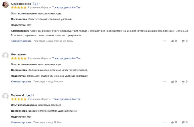Вот что пишут о рюкзаки в отзывах счастливые обладатели: