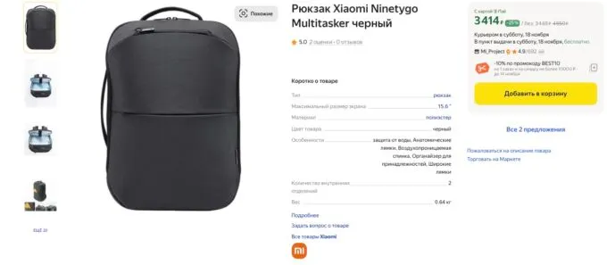 Сейчас на Яндекс Маркете можно урвать Xiaomi NinetyGo Multitasker Backpack всего за 3103 рубля по промокоду BEST10. Также не забывайте, что многие банки готовы отсыпать кэшбек до 30% за покупку на этой платформе.
