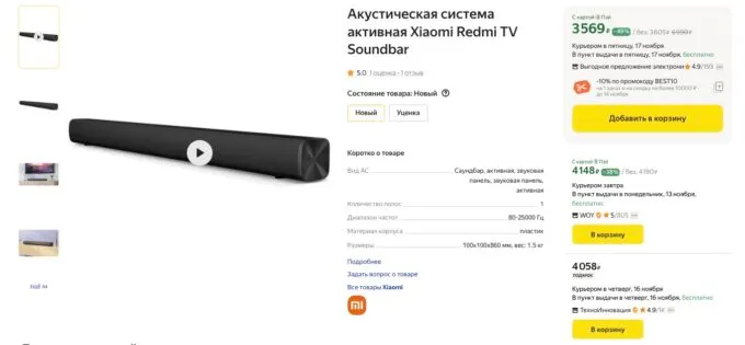 Прямо сейчас хит от Xiaomi Redmi TV Soundbar на Яндекс Маркете сливают за 3244 рубля по промокоду BEST10. Ещё больше вы сможете сэкономить с кэшбеком некоторых банков — так он вообще обойдётся дешевле 3 кэсов.
