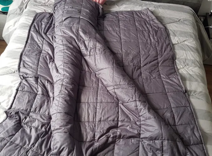 Практически идеальное одеяло — есть возможность регулировки веса (груз находится в мешочках, которые можно снять), качественные материалы — сатин и мягкий плюш, возможность стирки. Утепления нет, в комплекте присутствует сумка. Но есть один минус: в основном бренд продает только детские одеяла, для взрослых — максимум «полуторка».