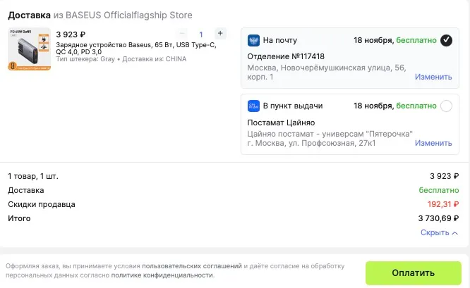 В России цены на такой девайс стартуют с 4300 рублей, но на AliExpress тончайший зарядник Baseus GaN5 Pro Ultra-Slim Fast Charger можно забрать за 3730 рублей.