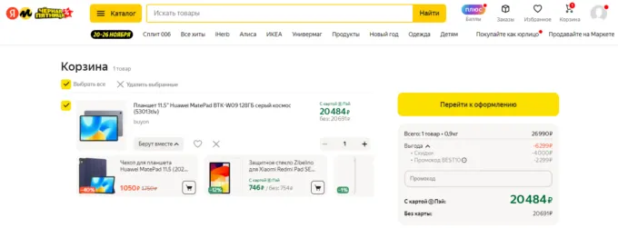 Всем остальным можно смело переходить по ссылке на Маркет, добавлять лот в корзину и вбивать промокод BEST10 — прайс на Huawei MatePad 11.5 опустится до 20 691 рубля. Стоит отметить, что цена указана для Москвы — жителям других городов нужно переключиться на столицу и проверить можно ли оформить доставку.