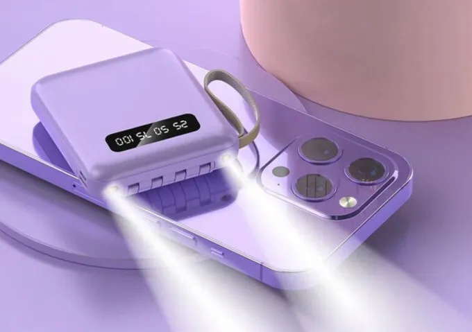 Самый маленький пауэрбанк в подборке. Из-за этого есть компромисс — провода не встроены в корпус, а подключаются через специальный адаптер. Есть удобная лямка, два фонарика и экран. Весит всего 350 граммов, легко помещается в кармане. 20 тысяч мАч – похоже на вранье.