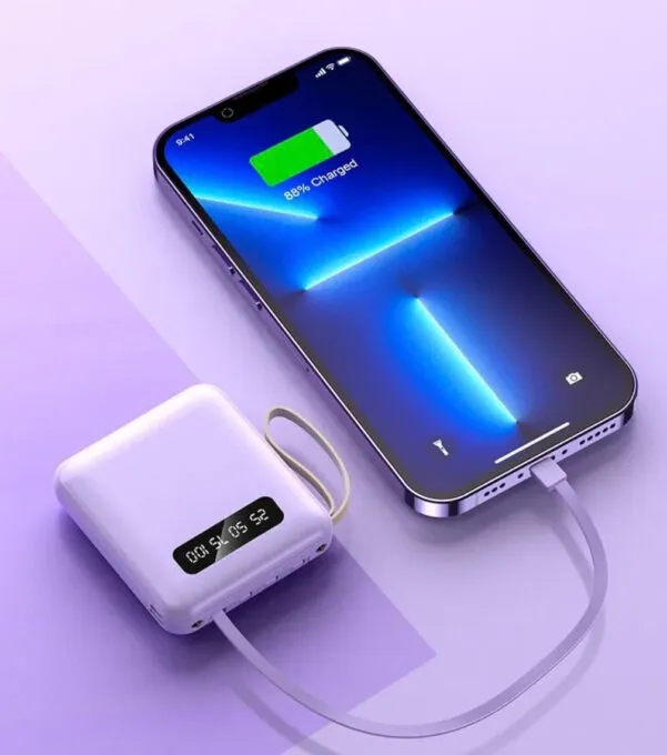 Многие видели в торговых центрах, кафе и кальянных пауэрбанки в аренду — обычно они имеют небольшие габариты и встроенный провод. Ноутбук от такой батарейки не зарядишь, но смартфон оживить вполне можно.