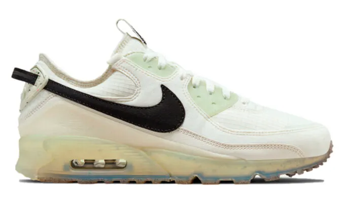 Эффектные и относительно недорогие «эйр максы». Обувь изготовлена из переработанных материалов, верх имеет грубую сетчатую текстуру, культовый свуш плавно переходит в лямку на задней части кроссовка. Промежуточная подошва максимально массивная, а подметка имеет очень глубокий протектор.