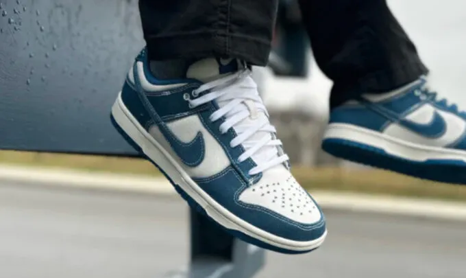 Необычная пара, верх которой создан с закосом под джинсовый материал. Цвет Industrial Blue, скорее всего, отсылает к обуви рабочих на заводе и в доках. Под деним обувь подходит идеально, но из-за текстильного верха по пыльной местности в них лучше не расхаживать.